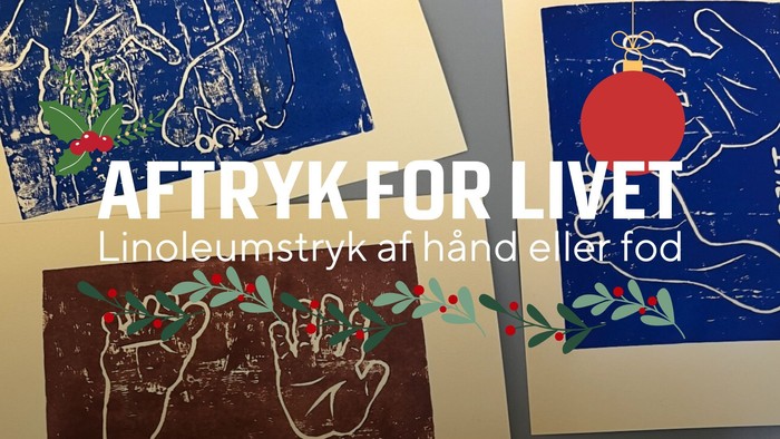 Linoleumstrykket af din babys hånd eller fod får du med hjem, og du kan fx bruge aftrykket til at lave en fin dåbs- eller navngivningsinvitation eller julegave til bedsteforældrene.
